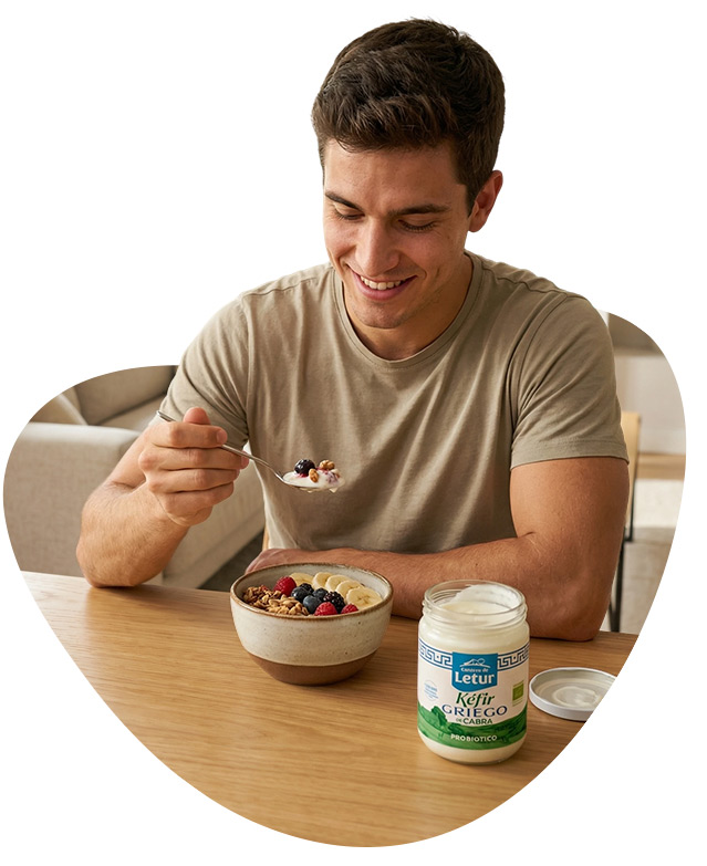 Es fresco, ligeramente ácido y suave, con una textura algo más ligera y granulosa que el yogur. Su sabor es natural y equilibrado.